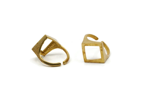 Brass Diamond Ring, 2 Raw Brass Diamond Shape Adjustable Rings N0066