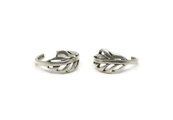 Silver Leaf Ring, 2 Antique Silver Plated Brass Adjustable Leaf Rings N0061