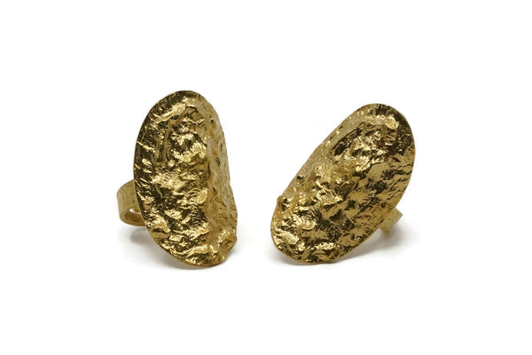 Brass Oval Ring, Raw Brass Textured Adjustable Oval Rings E259