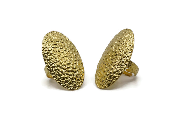 Brass Oval Ring, Raw Brass Textured Adjustable Oval Rings E261