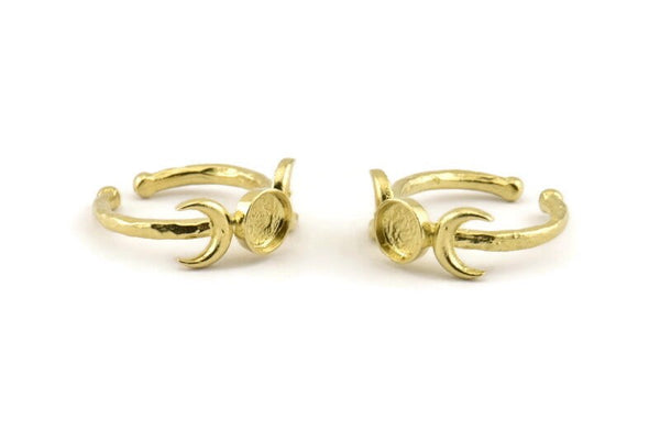 Raw Brass Moon And Planet Ring With 1 Stone Setting - Pad Size 6mm