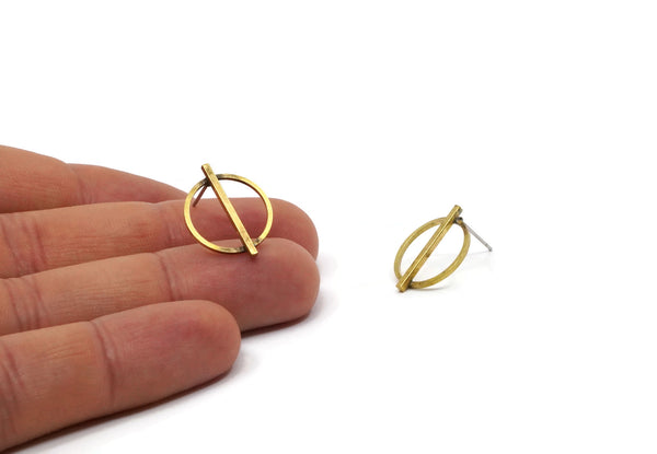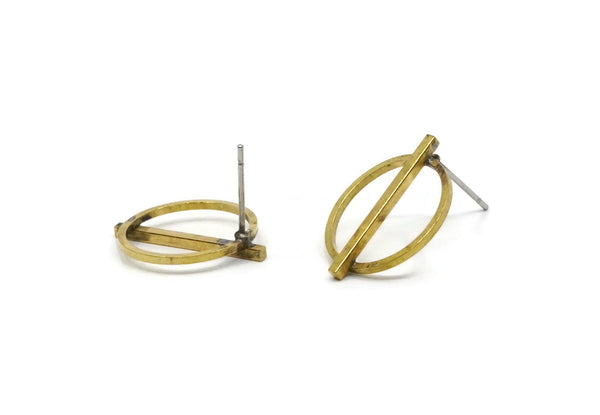 Raw Brass Round Stud Earrings