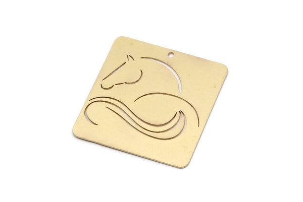 Brass Square Charm, 4 Raw Brass Horse Patterned Square Charms With 1 Hole, For Jewelry Making (30x30x0.60mm) SMP2989