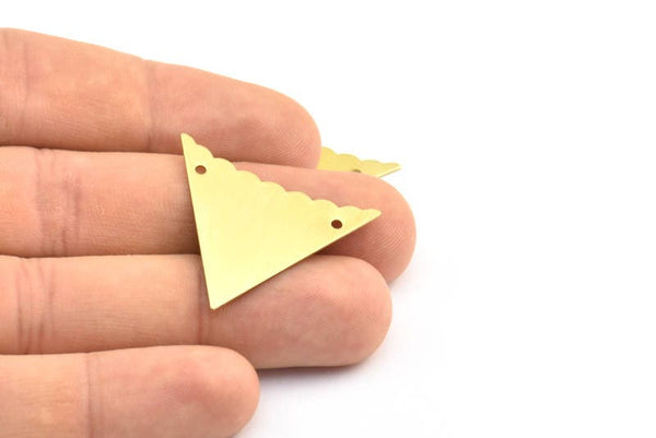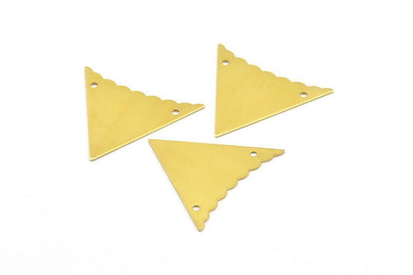 Brass Triangle Pendant Round Cut, 10 Raw Brass Triangle Pendant With 2 Holes (33x33x33mm) Brass 044 A0149