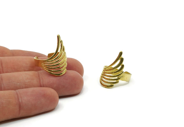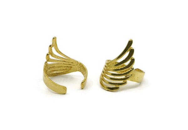 Brass Wing Ring, 2 Raw Brass Adjustable Wing Rings N0039