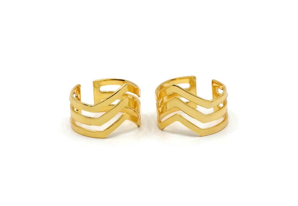 Copper Bohemian Ring, 2 Gold Plated Copper Chevron Adjustable Ring Settings (16-17mm) 23 Gauge Mn87 Q0463
