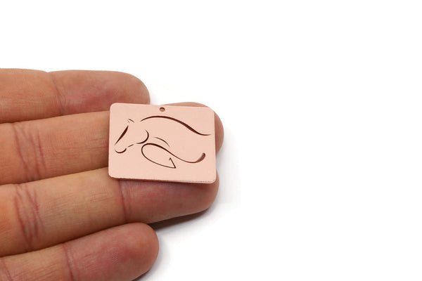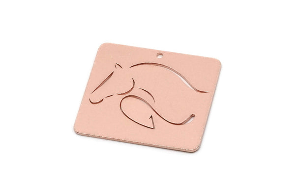 Raw Copper Horse Patterned Rectangle Charms With 1 Hole