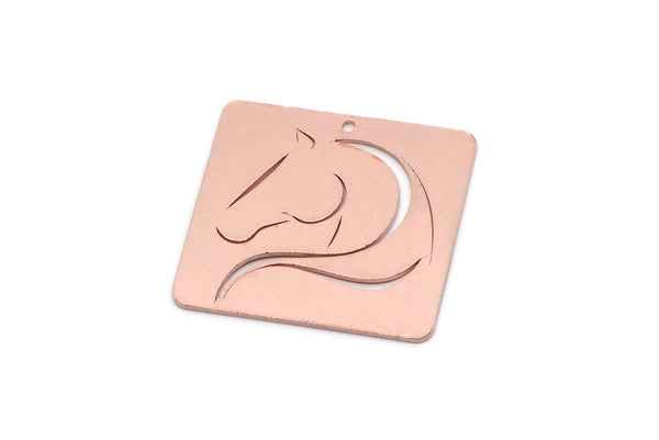 Raw Copper Horse Patterned Rectangle Charms With 1 Hole