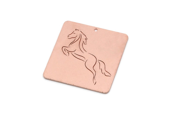 Raw Copper Horse Patterned Square Charms With 1 Hole