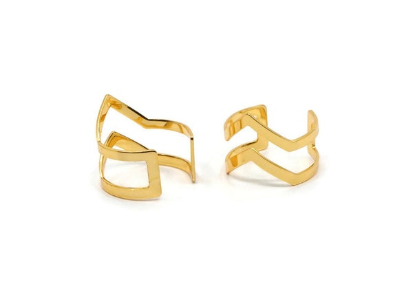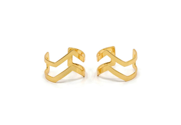 Double Chevron Ring, 3 Gold Plated Double Chevron Adjustable Rings Settings (16x17mm) 23 Gauge Mn03 Q0311