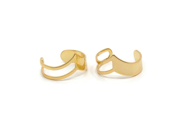 Gold Chevron Ring, 4 Gold Plated Brass Adjustable Chevron Ring Settings - 16-17mm / 23 Gauge Mn20 Q310