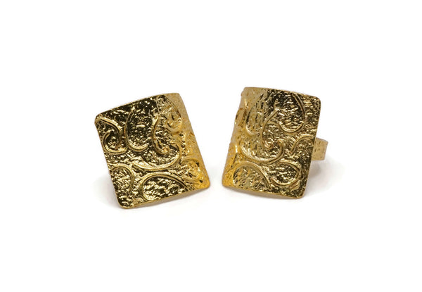 Gold Ethnic Ring, Gold Plated Brass Textured Adjustable Ethnic Rings E252 Q0510