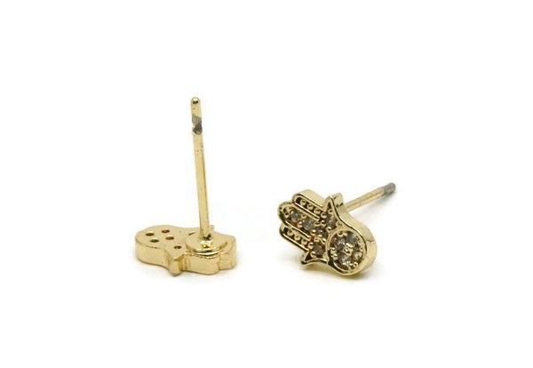 Gold Hamsa Earring, 4 Gold Plated Hamsa Hand, Cubic Zircon, CZ Pave Hand Earring, Zircon Stud Earrings, Hand Of Fatima (8x6mm) SY0181