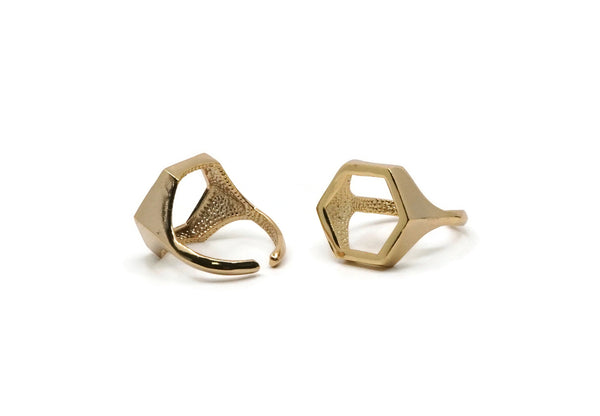 Gold Hexagon Ring, Gold Plated Adjustable Hexagon Rings N0062 Q229