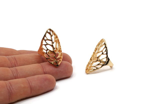 Gold Leaf Ring, Gold Plated Brass Adjustable Leaf Rings N0030 Q0408