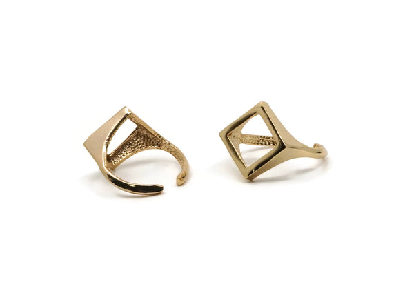 Gold Rhomb Ring, Gold Plated Brass Diamond Shape Adjustable Ring N0066 Q228