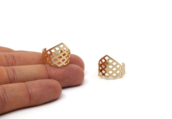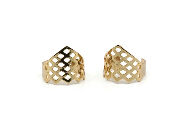 Gold Riddled Ring, 2 Gold Plated Brass Adjustable Riddled Ring Settings (16x17mm / 23 Gauge) MN11 Q0427