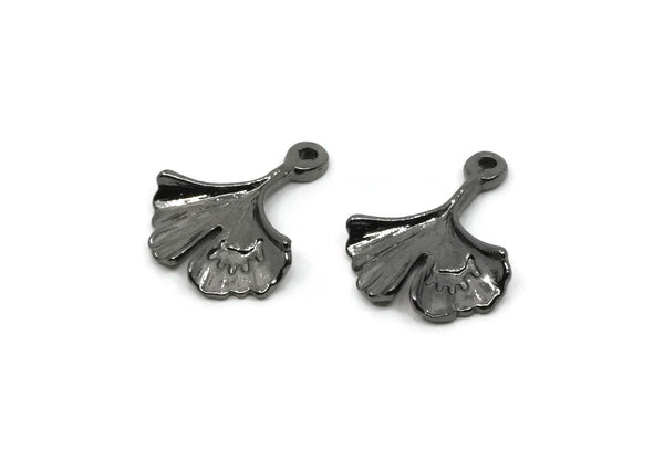 Gunmetal Plated Brass Ginkgo Leaf Charms