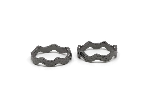 Gunmetal Wavy Ring, 2 Gunmetal Plated Brass Wavy Rings (17mm) N0356