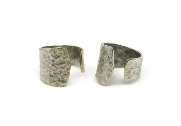 Hammered Open Ring, Antique Silver Plated Brass Hammered Adjustable Rings N0137