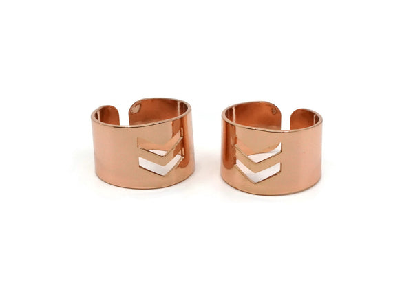 Rose Gold Chevron Ring, Rose Gold Plated Brass Adjustable Double Chevron Ring (19mm) A0885 Q0316