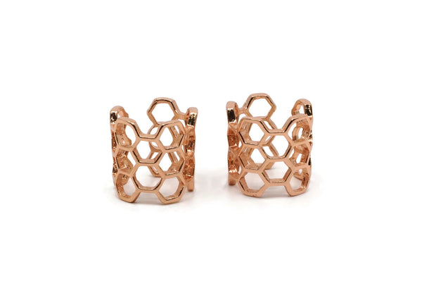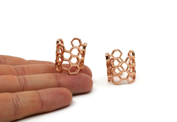 Rose Gold Honeycomb Ring, Rose Gold Plated Brass Adjustable Honeycomb Rings N0014 Q0413
