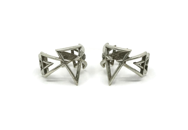 Silver Bohemian Ring, 2 Antique Silver Plated Brass Adjustable Multi Triangle Rings N0051