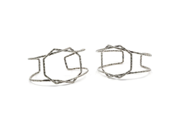 Silver Boho Cuff, Antique Silver Plated Brass Wire Bracelet Bangle BRC152 V150