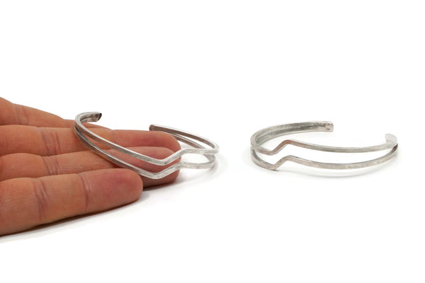 Silver Bracelet, Antique Silver Plated Brass Bracelet Double Wire İrregular Shaped Bangle (61x13x2mm) BRC188