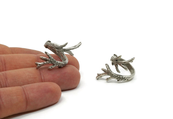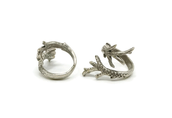 Silver Buck Horn Ring, Antique Silver Plated Brass Adjustable Buck Horn Rings N0008
