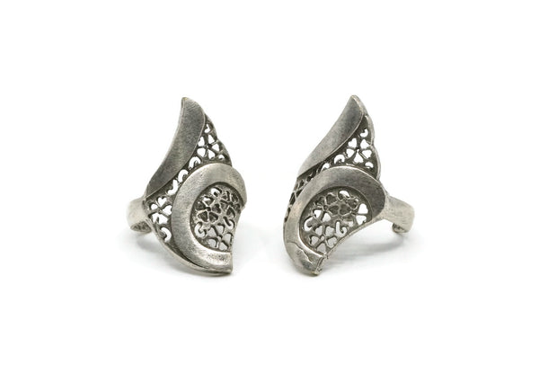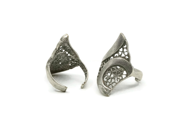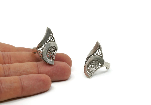 Silver Flower Ring, Antique Silver Plated Brass Adjustable Flower Rings N0036