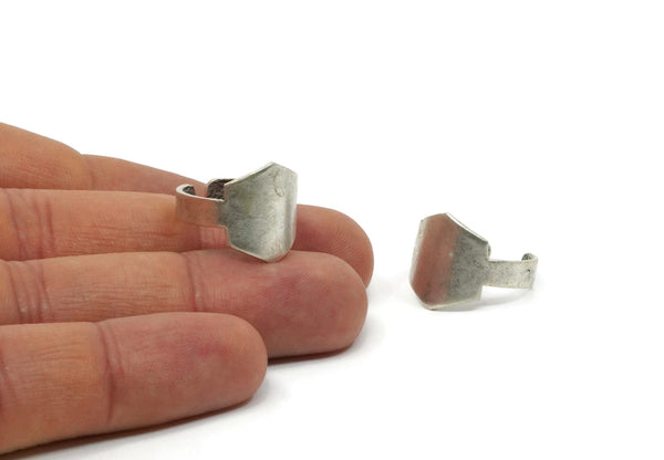 Silver Hexagon Ring, 2 Antique Silver Plated Brass Adjustable Hexagon Ring N0091