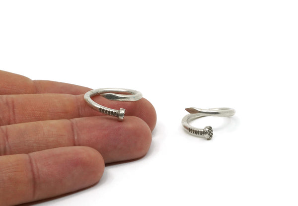 Silver Nail Ring, 2 Antique Silver Plated Brass Adjustable Nail Rings (16x2.50mm) N0167