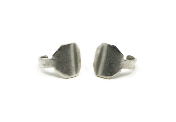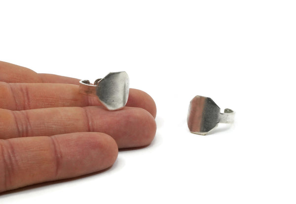 Silver Ring, 2 Antique Silver Plated Brass Adjustable Geometric Ring N0112