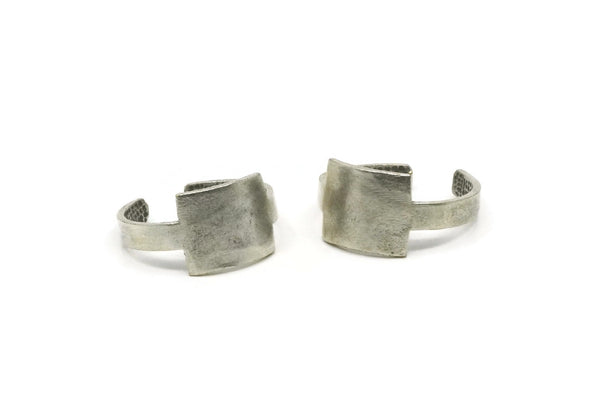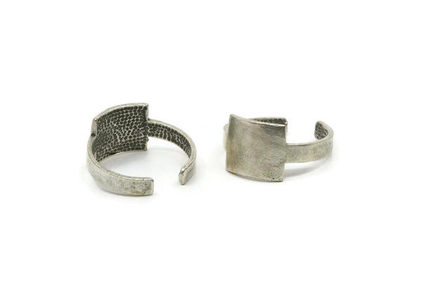 Silver Ring, 2 Antique Silver Plated Brass Adjustable Rectangle Rings N0060