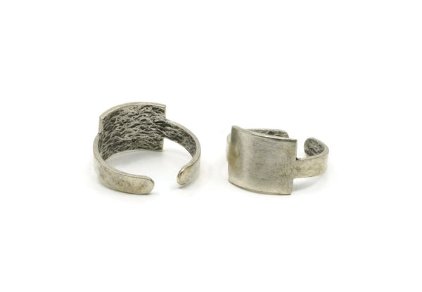 Silver Ring, 2 Antique Silver Plated Brass Adjustable Rectangle Rings N0111