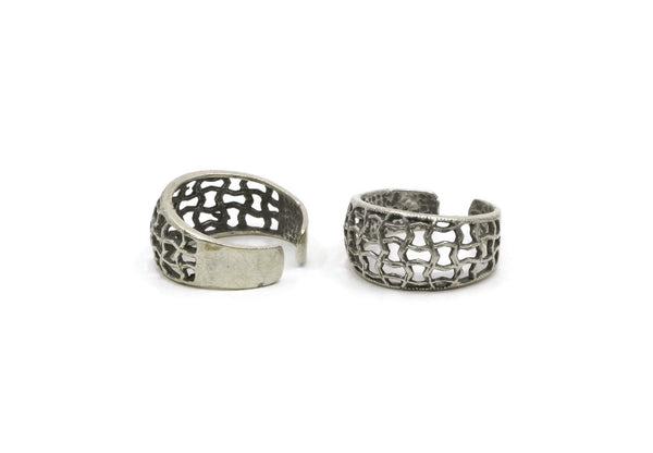 Silver Ring, 2 Antique Silver Plated Brass Adjustable Rings N0059