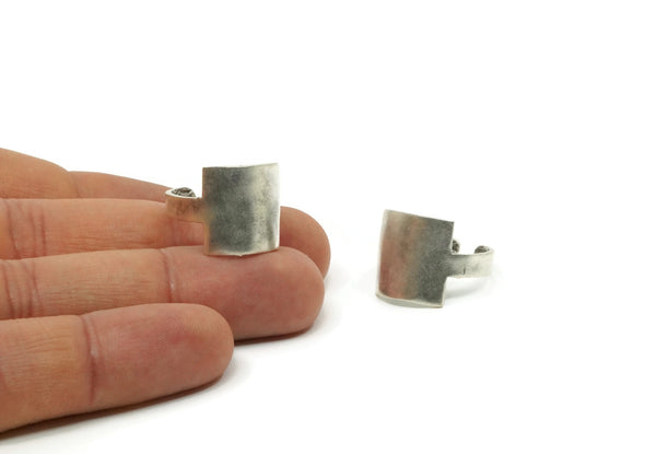 Silver Ring, Antique Silver Plated Brass Adjustable Square Rings N0095