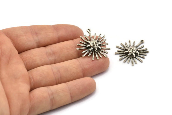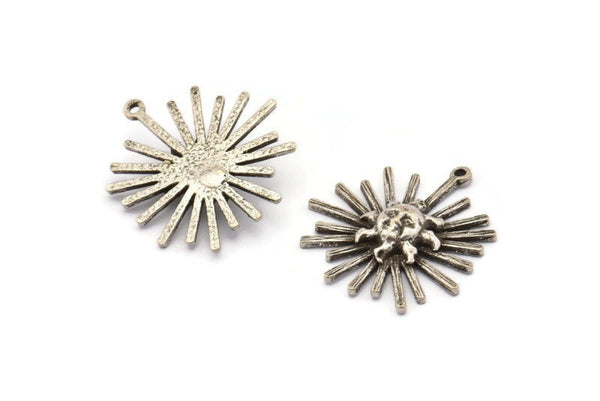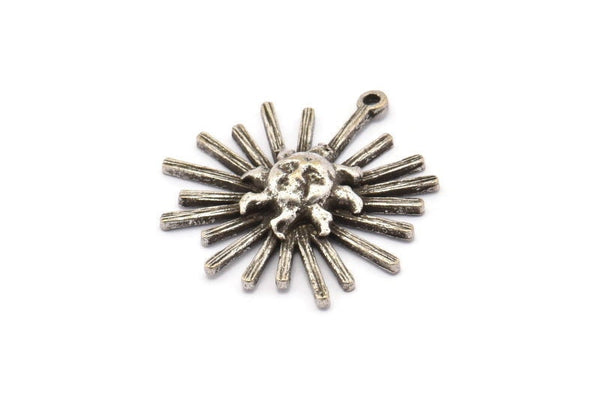Antique Silver Plated Brass, Silver Sun, Charm Pendant, Silver Pendant, Silver Charm With 1 Loop