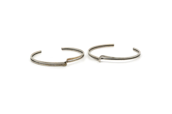 Silver Thin Cuff, Antique Silver Plated Brass Wire Bracelet Bangle BRC203