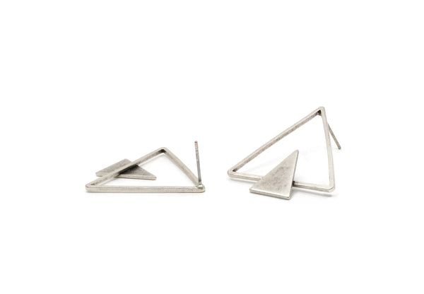 Antique Silver Plated Brass Triangle Stud Earrings
