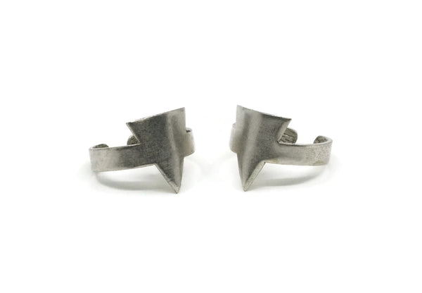 Silver Triangle Ring, 2 Antique Silver Plated Brass Adjustable Triangle Ring N0089