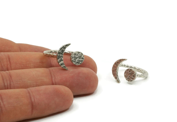 Silver Universe Ring, 2 Hammered Antique Silver Plated Brass Adjustable Moon And Planet Rings N0129