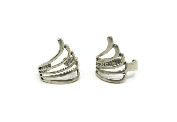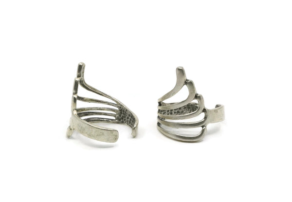 Silver Wing Ring, 2 Antique Silver Plated Brass Adjustable Wing Rings N0070