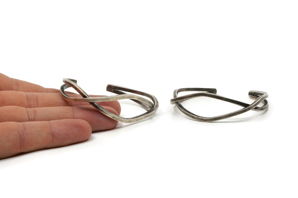 Silver Wire Bracelet, Antique Silver Plated Brass Wire Bracelet Bangle (62x15x150mm) Brc054