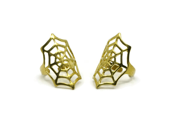 Spider Web Ring, 2 Raw Brass Adjustable Spider Web Rings N0033