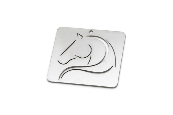 Stainless Steel Horse Patterned Rectangle Charms With 1 Hole