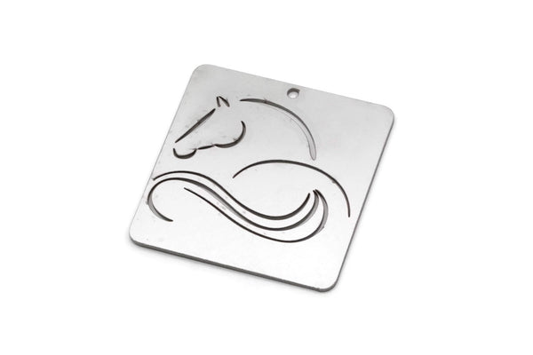 Steel Square Charm, 4 Stainless Steel Horse Patterned Square Charms With 1 Hole, For Jewelry Making (30x30x0.80mm) SMP2989