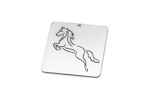 Steel Square Charm, 4 Stainless Steel Horse Patterned Square Charms With 1 Hole, For Jewelry Making (30x30x0.80mm) SMP2991