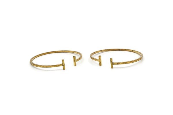 T Bar Bracelet, Raw Brass Wire T Bar Bracelet Bangle Cuff E307